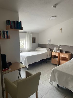 Distribuidas en 19 habitaciones dobles y 8 individuales con el sistema de llamada paciente-enfermera, con 10 cuartos de baño geriátricos distribuidos en una superficie de 950 m2. y un gran jardín.